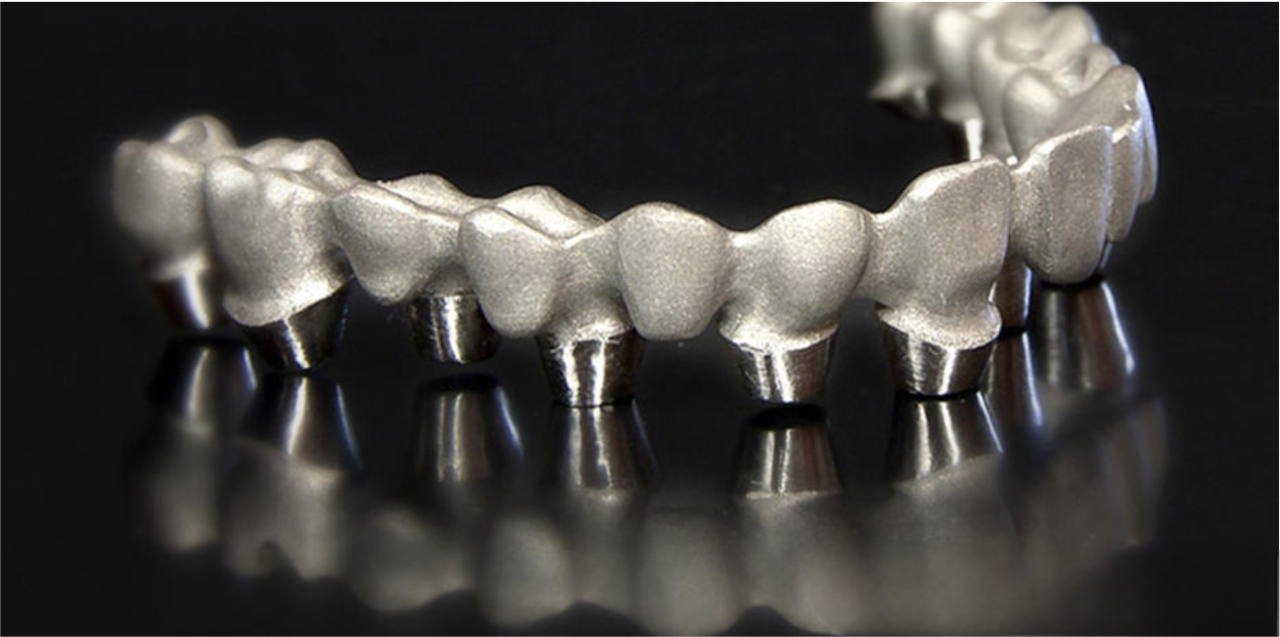 有源医疗设备展认为目前金属3D打印在齿科应用中主要用于制作烤瓷牙(冠或桥)内部的金属层、正畸或修复用的金属支架、全口种植牙中的金属架(bar),与使用减材铣削技术相比,该过程更快、更经济,更容易实现各种单独的几何形状。
