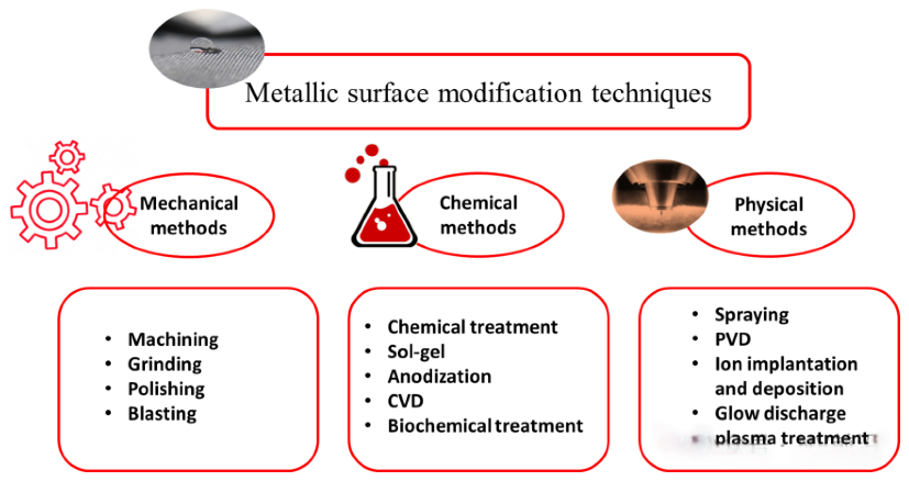 表面修饰可以分为机械修饰,化学修饰和物理修饰。研究表明,粗糙表面更容易形成血栓,因此表面处理对于获得无污染、光滑的支架材料表面至关重要。支架的多种表面处理方法包括机械抛光、电抛光、超声清洗、化学蚀刻和脱脂,以及低压等离子蚀刻。电抛光具有多项优点,使其成为最受欢迎的表面处理方法。首先它可用于复杂基材形状(如血管内支架),从而产生良好钝化的、光滑且无缺陷和污染的表面。其次,它可以去除导致各种腐蚀过程(特别是局部腐蚀)的一些非金属夹杂物和不规则性。电抛光过程中,金属在合适的电解质溶液中作为阳极极化,并与金属阴极一起进行。多种参数影响电抛光过程,如阳极电流密度、施加电势、电解液温度、抛光时间、电解液成分和浓度、搅拌方式以及阳极与阴极的表面积比(即两电极之间的几何间隙)。一些研究报告表明,冠状动脉支架材料的抛光可减少血栓和纤维蛋白原的沉积,并可能在动物模型中减少新内膜增生。为了防止支架产品的氧化和劣化,在电抛光后进行表面钝化[7]。