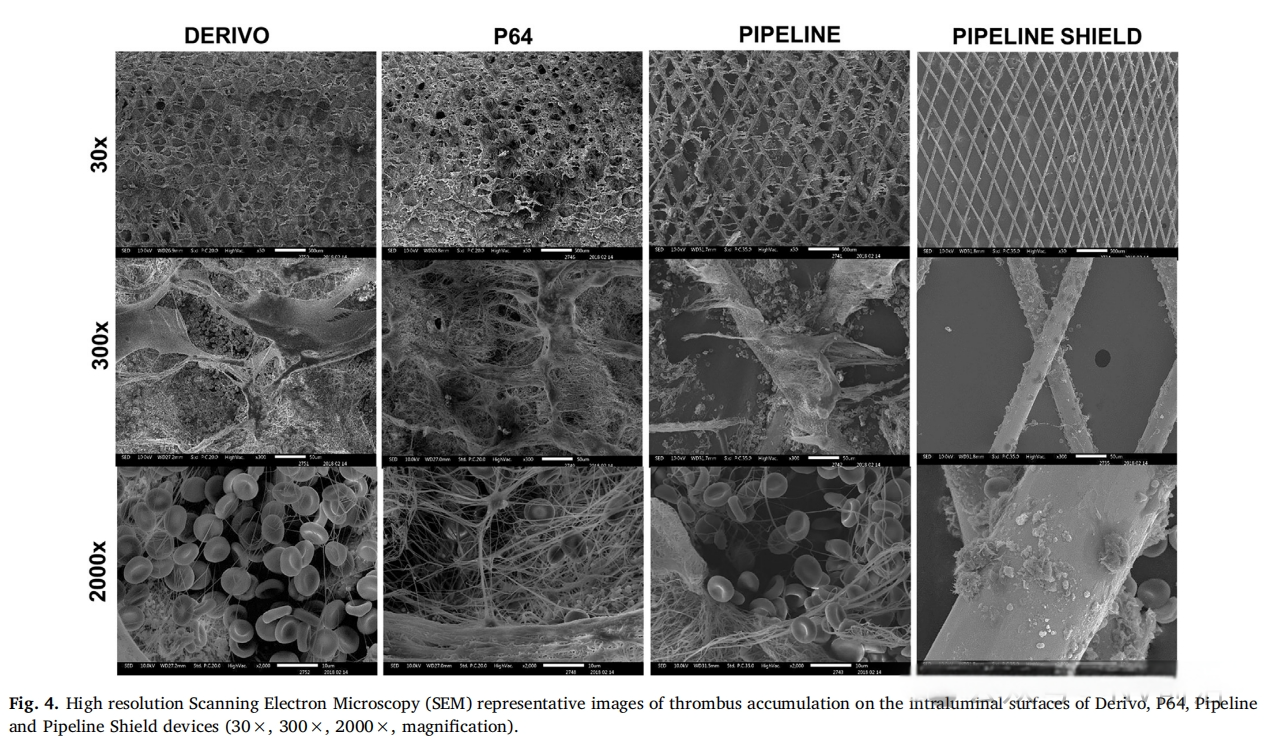 (Thrombogenicity assessment of pipeline, pipeline shield, Derivo and P64 flow diverters in an in vitro pulsatile flow human blood loop model)