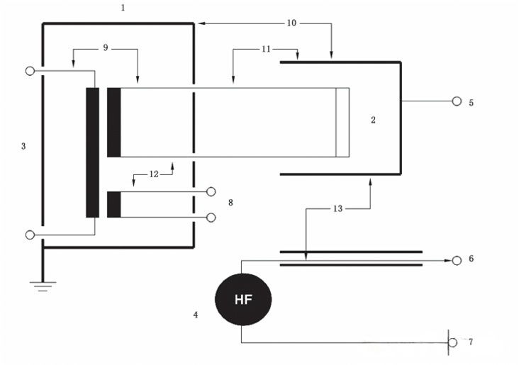 为实现电磁兼容抗扰度和高频设备抗扰的要求,通常在图3的路径10会选用一个或多个Y电容串接,以将外部干扰尽可能的从设备接地外壳中导走;同时在路径10和11也存在着分布电容,尤其路径11。电子内窥镜内部电路在结构上与患者连接部分耦合较多,存在着不容忽视的分布电容。这对电子内窥镜患者漏电流和F型应用部分患者加压漏电流可能会带来影响。