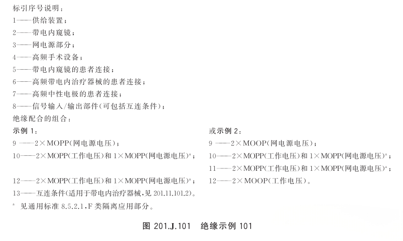 另外,以上要求仅是电子内窥镜部分的绝缘要求,搭配主机使用时还应整体满足GB9706.1-2020绝缘要求,如下图(from GB9706.1-2020附录J):
