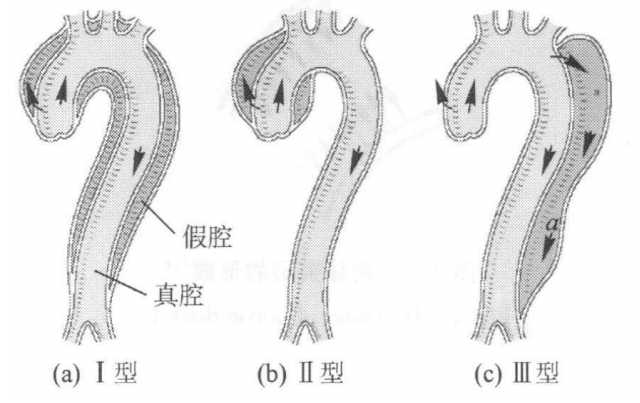 主动脉夹层(Aortic dissection,AD)是由各种病理因素(高血压、动脉硬化、先天性血管发育不良等)导致动脉壁内膜撕裂,血液通过内膜破裂处进入动脉壁中层而导致主动脉壁分层,并沿主动脉长轴方向扩展形成一个新的向外突出的血管腔,称为“假腔”,而原来的血管腔称为“真腔”。年自然发病率约1/10万,男性多于女性。
