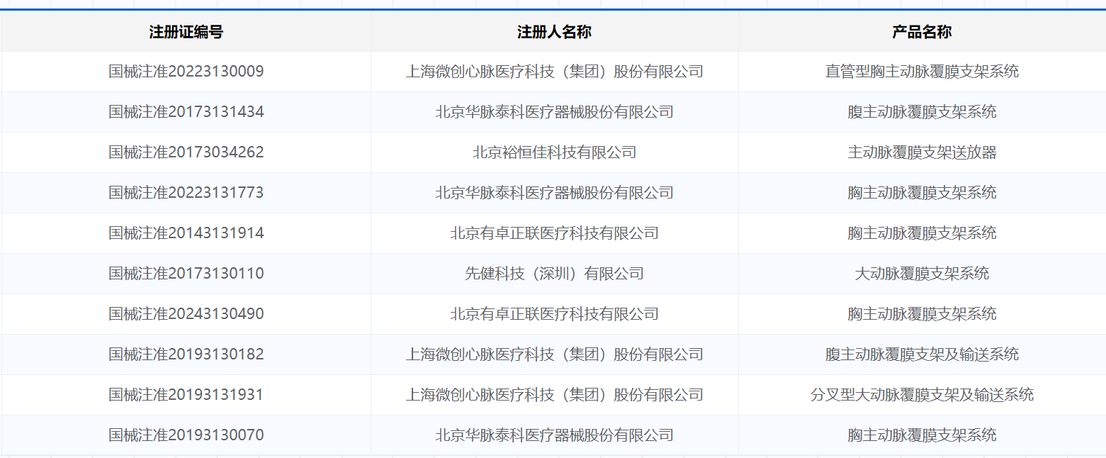 现阶段,主动脉腔内介入治疗手术主要使用主动脉覆膜支架(胸/腹主动脉覆膜支架),用来治疗主动脉夹层、腹主动脉瘤、胸主动脉瘤等主动脉疾病。然而,尚未有一款支架产品可广泛应用于主动脉A型夹层、B型夹层以及现存残余夹层。