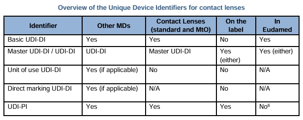 关于Master UDI-DI分配的法规被强制执行前,未分配Master UDI-DI的隐形眼镜可以投放市场,但是制造商可以为不同的标识目的分配其他类型的标识符(例如GTIN或其他标准),或在自愿的基础上分配Master UDI-DI。