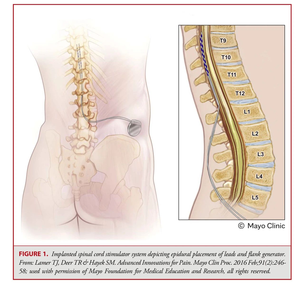 脊髓刺激(SCS)系统由一个或多个植入硬膜外腔的电极组成,通常与植入式脉冲发生器相连。