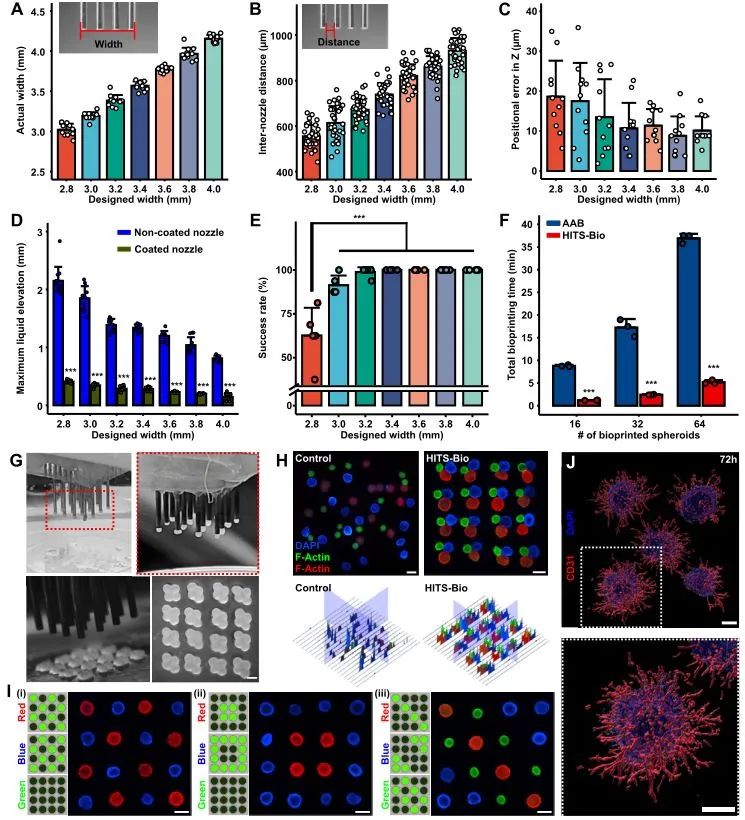 为了验证HITS-Bio平台的有效性,研究人员进行了多项实验测试。首先,他们成功地在一个小时内制造出了一个一立方厘米大小的软骨组织结构,其中包含了大约600个由软骨细胞组成的球状体。这个过程用时不到40分钟,效率极高,远超现有生物打印技术的能力。