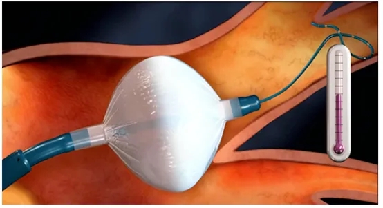 冷冻球囊消融是液态氧化亚氮在球囊中汽化而吸收了大量的热量,导致临近心肌组织骤然冷却,使异常的心肌冷冻凝固,从而破坏电生理活动异常的组织。温度和消融时间是决定冷冻能源对组织的损伤程度的有效指标。