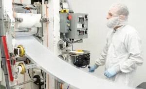 在严格管控的洁净室环境中,技术人员正监督压延工艺——这种精密工艺可用于生产具有精确厚度和表面一致性的高性能医用级硅胶片。