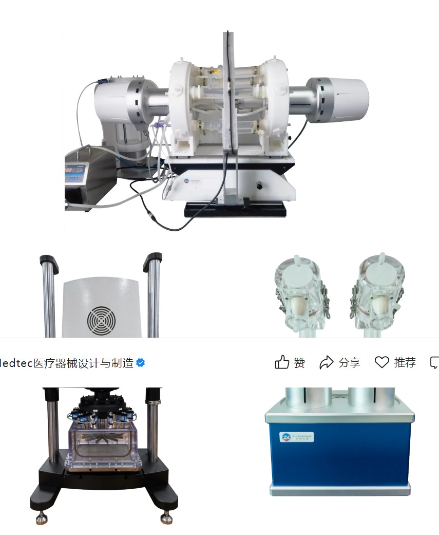可用于血管支架、介入瓣支架部分、气管支架、食道支架、封堵器和分流器等的加速脉动耐久性测试。采用无轴承电磁直线电机,实现对体积位移和压力的持续和精确控制。