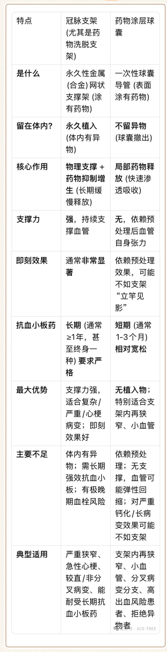 药物球囊: 像涂药的“小气球”,撑一下、涂完药就撤走,不留东西,适合特定情况(如支架又堵了、小血管),吃药时间短些。