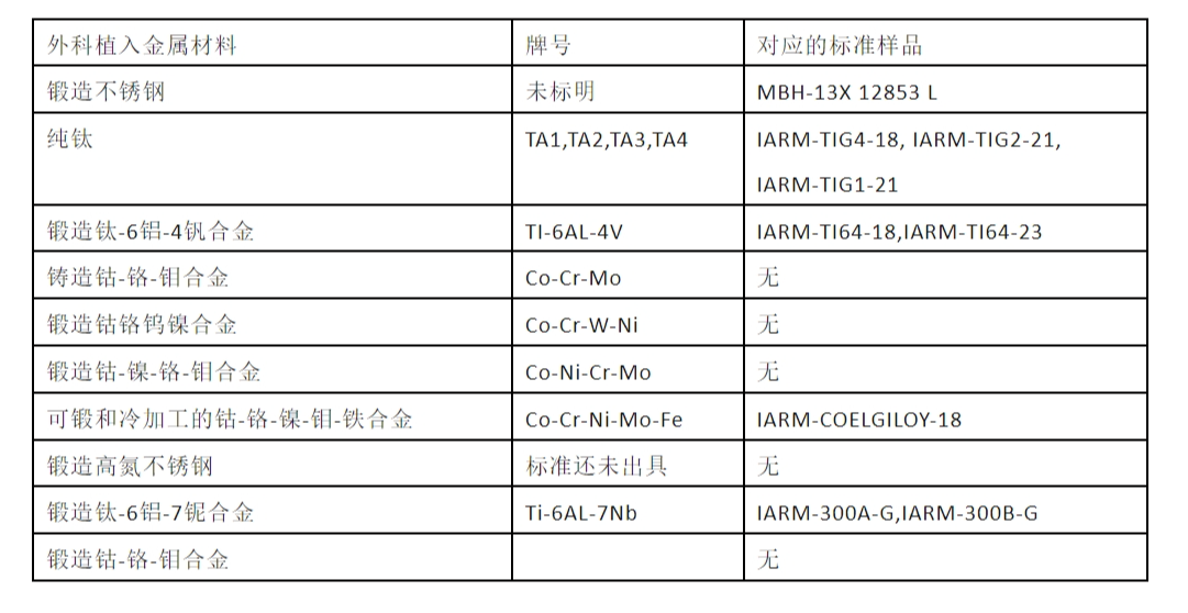 现行标准和强标中都对金属材料的化学成分进行了严格的限制。LGC-ARMI,MBH有部分匹配的标准样品,是植入物金属原材料质量控制不可或缺的产品,以下对应表格供各位医疗器械金属原材料供应商和使用者进行快速选择。