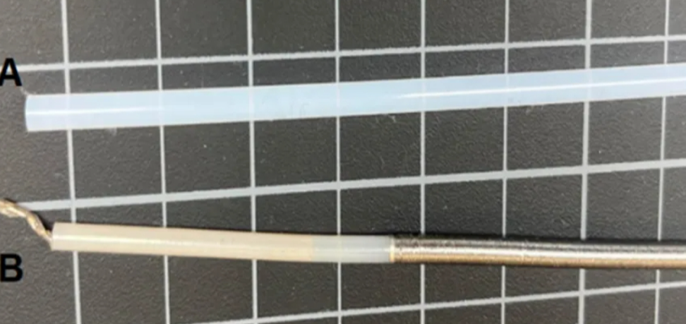 裸芯(A)和带有PTFE衬里及金属编织层的芯(B)