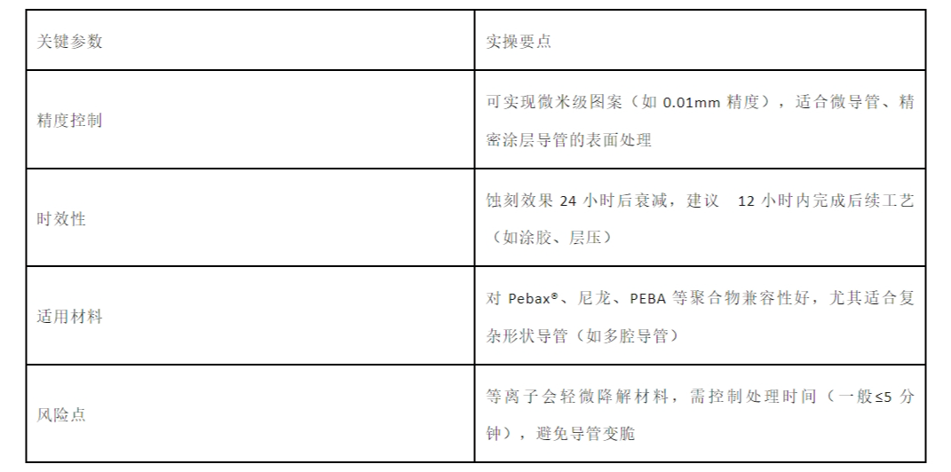 原理:利用等离子体(电离气体)中的带电粒子,物理“啃食” 导管表面,精准构建微观图案。