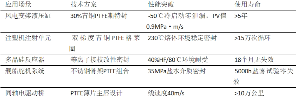 PTFE密封材料正经历从单一功能向多功能集成、从被动密封向智能响应的战略转型。在极端工况密封领域,通过填充改性和表面工程协同创新,已实现-50℃至300℃宽温域、40m/s高速、50MPa高压等复杂工况的可靠密封,在高端密封材料领域已突破国外垄断。