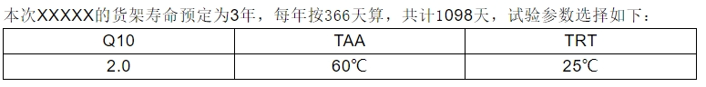 TAA=加速老化温度(℃),TRT=环境温度(℃),AAF(加速老化因子)=Q10(TAA-TRT)/10