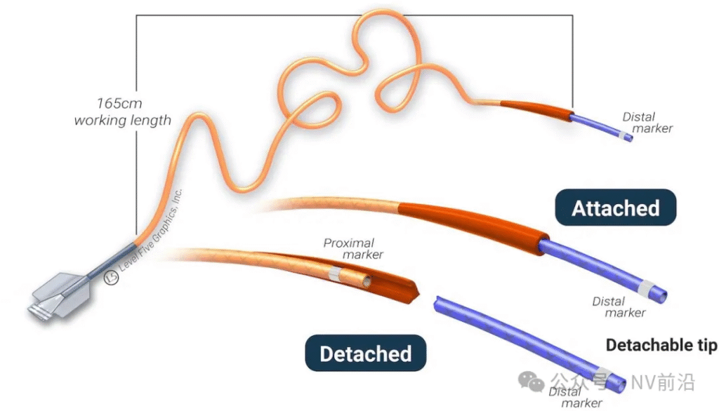 ●内径为0.0165″,长度为150 cm;远端带有弹簧圈解脱标记。