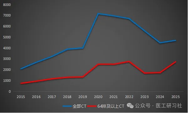 Medtec上海展关注到,近日,医工研习社和高端医械院数据中心联合发布的CT行业数据,2025年前三季度国内CT采购量约3184台,采购金额约206亿元。总体来说,2025年超过2024年,回归常态化发展,已毫无悬念。