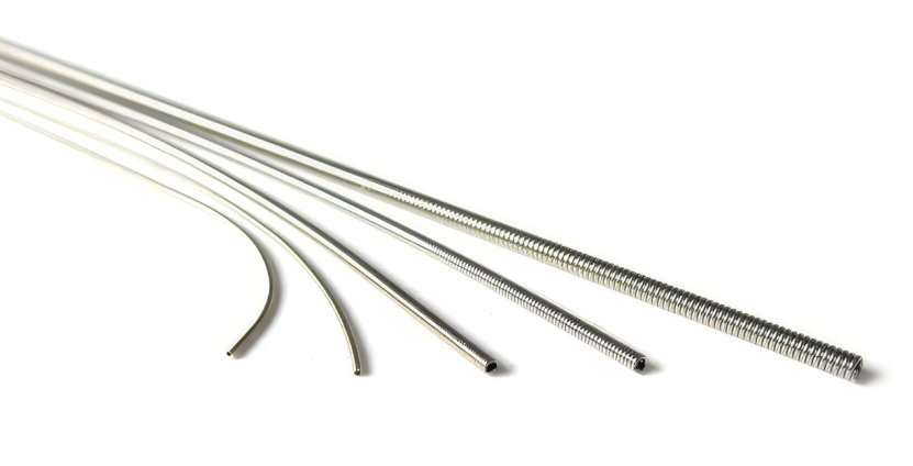 导丝弹簧及螺旋管的应用场景十分广泛,涵盖自行车刹车线、活检钳、导管以及柔性内窥镜或仿生机器人内部的控制线缆。此外,导丝弹簧还可以作为增强部件,内嵌或外覆于细长塑料管上使用。