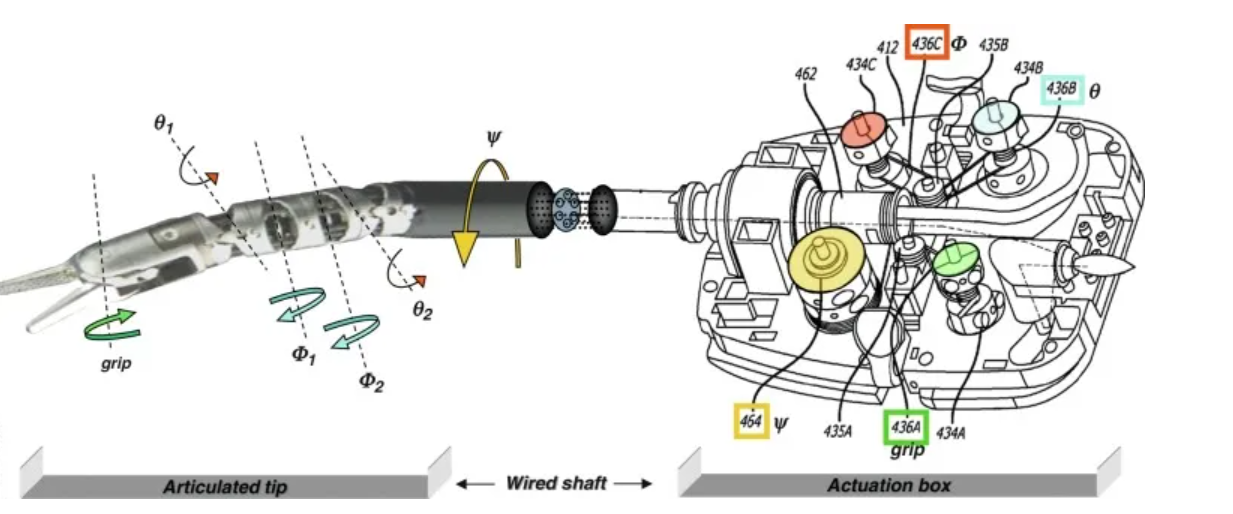 这些构成了遥操作器系统的末端部分,可能是整个达芬奇系统对手术最富有想象力的贡献。它们也代表了直观外科公司专利组合中最重要的部分,拥有超过200项相关专利。