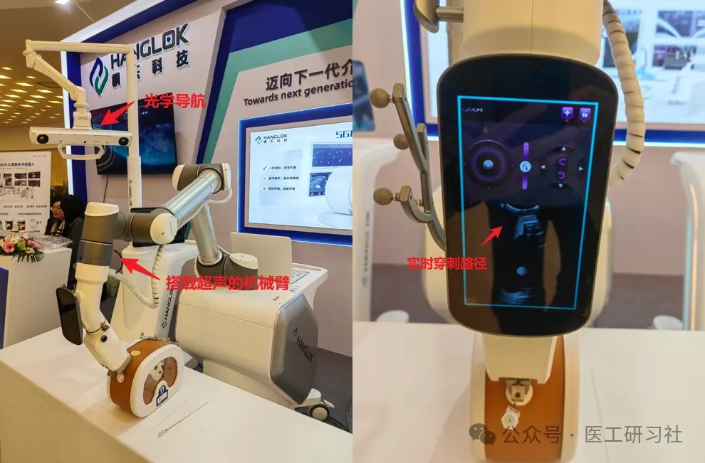 其二,在CCI2025会场,展示了一批经皮穿刺手术机器人,有CT引导下主打光学导航的真健康和伽奈维,有CT引导下电磁导航的医达健康,有CT引导下透视导航的联影智融,还有同时兼顾光学+超声导航的横乐科技。类似的还有微创、佗道、迈迪斯、奥达智声,等等,中国穿刺机器人行业似乎进入了百花齐放的时代。