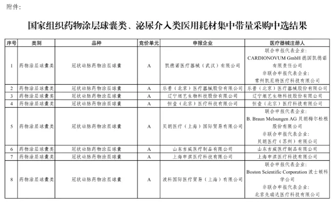 药物涂层球囊产品全部中选
